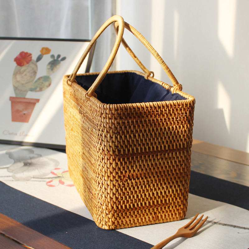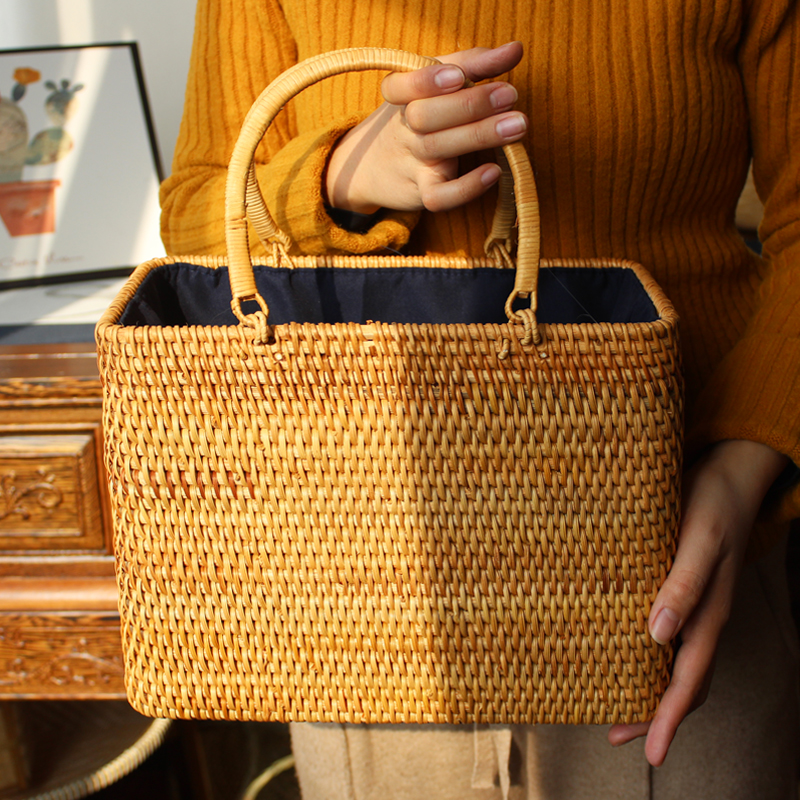Rattan bag Fujita handmade bamboo basket Vietnam handbag round imported rattan bag weaving bag Europe and the United States straw bag rattan