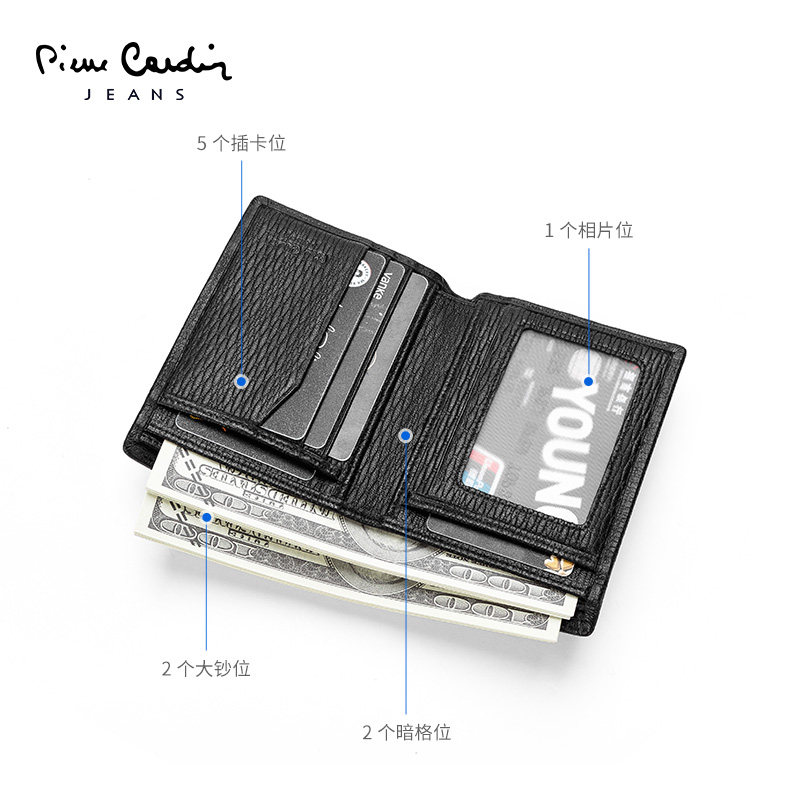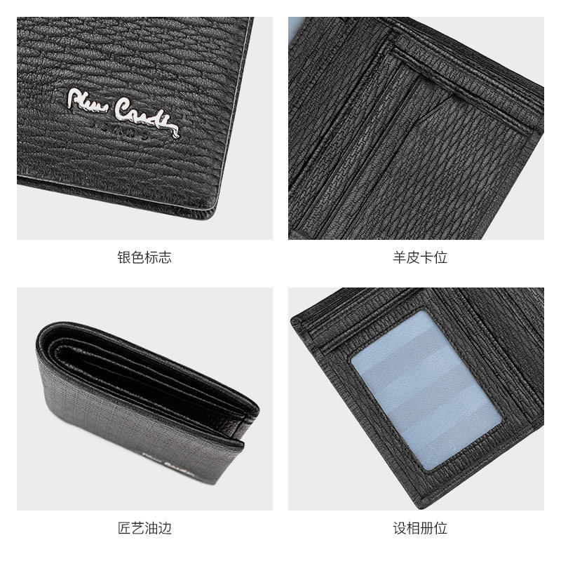 Pierre Cardin Men's Genuine Leather Wallet Short Business Casual Men's Sheepskin Money Ticket Holder Simple Youth Wallet
