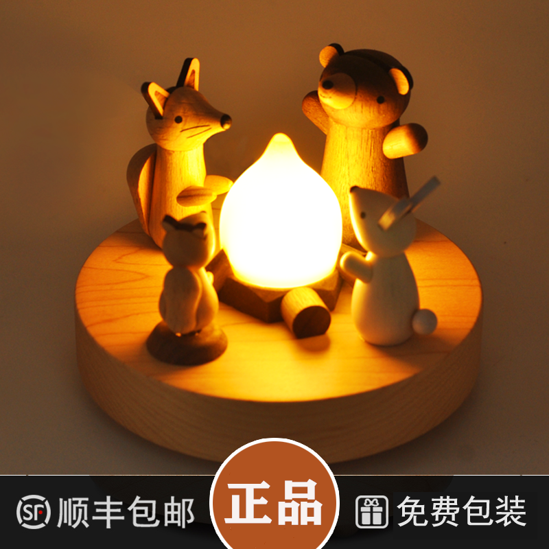 jeancard night light animal campfire LED wooden home bedside table lamp to send children Tanabata Valentine's Day