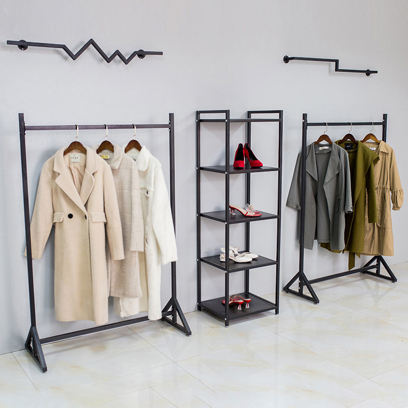 Women's clothing store shelf display shelf floor-to-ceiling single-pole hanging hanger children's clothing store side hanger hanger Nakajima shelf
