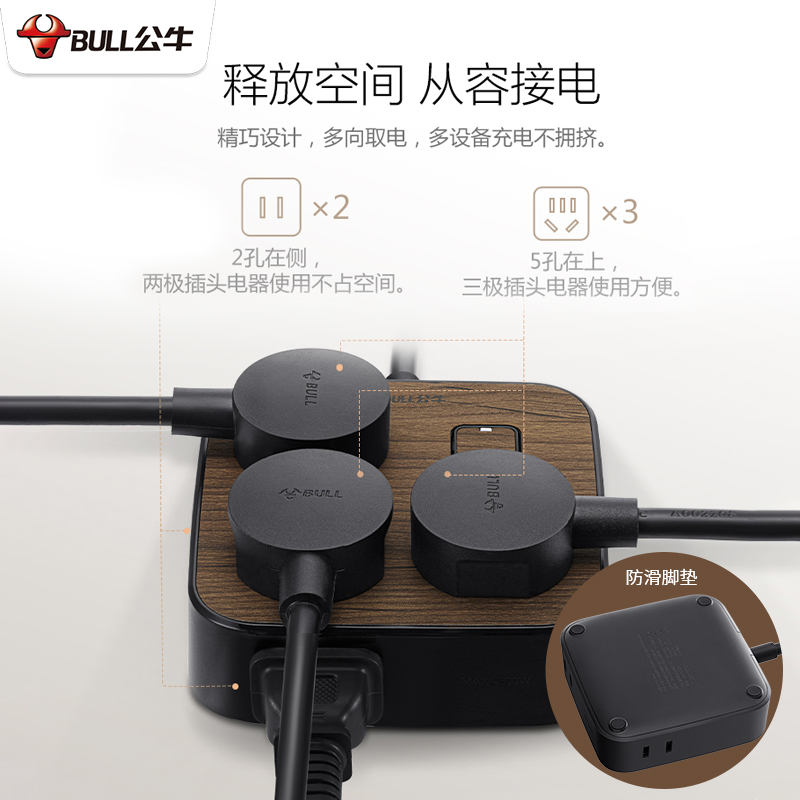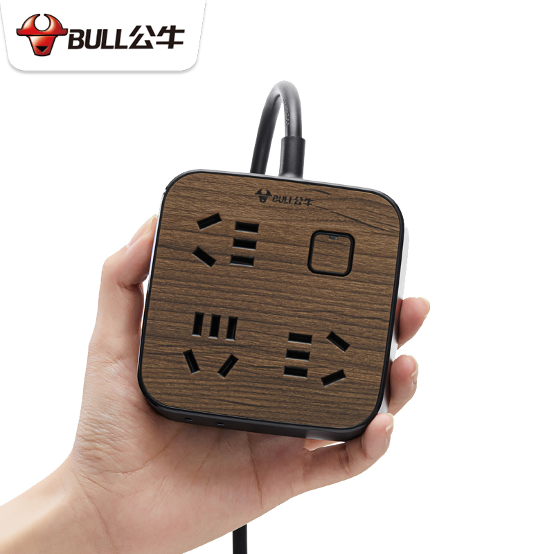 Bull Socket Wood Grain Trim Creative Desktop Tug Extension Cord Plugboard with Line Home USB multifunction plug-in