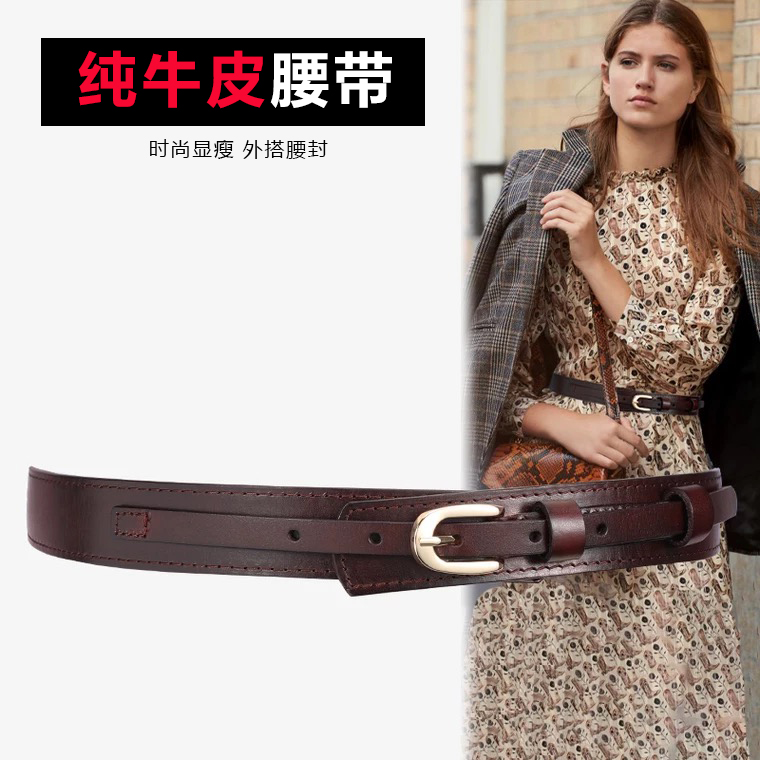 Suit Fine Belt Lady Genuine Leather Fashion 100 Hitch Decoration Leather Strap Waist Seal External Hitch Fit Foreign Dress Collection Waist