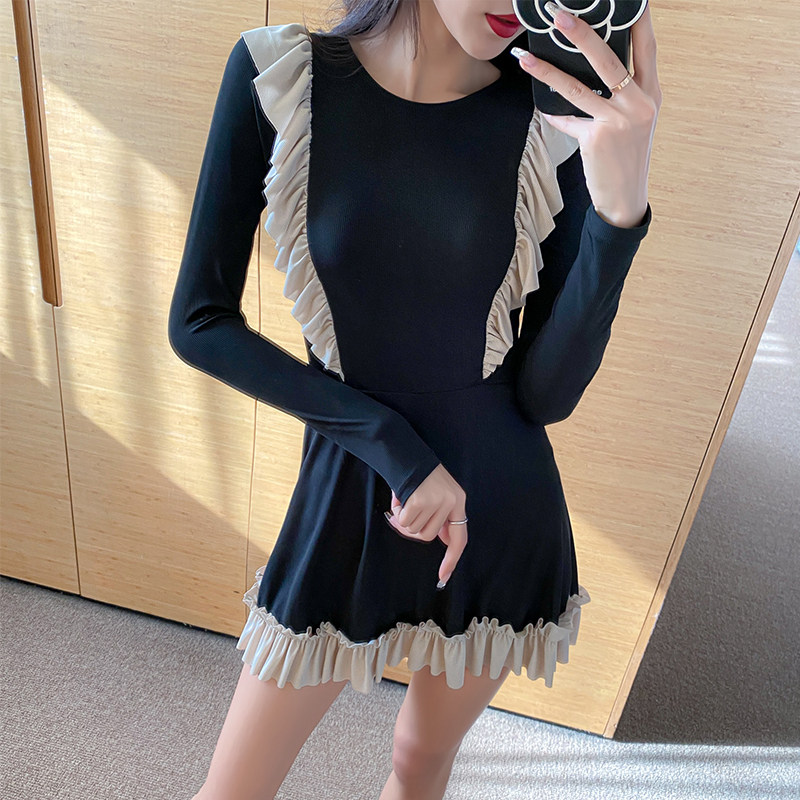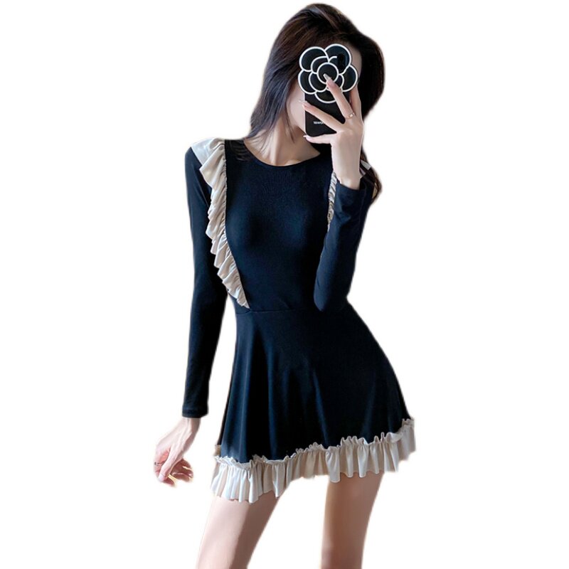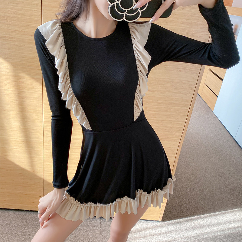 Swimsuit women's summer 2022 new conservative long-sleeved students Korean ins simple cover belly show thin small fresh hot spring