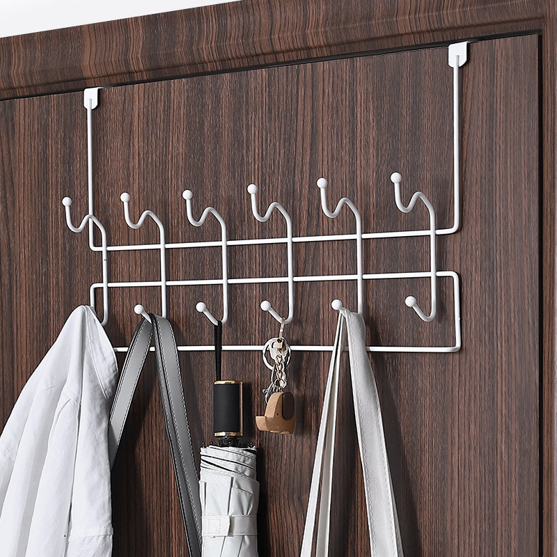 Non-punching door rear double row hook shelve clothes hanger bathroom door wall-mounted back style clothes rack cloak hook