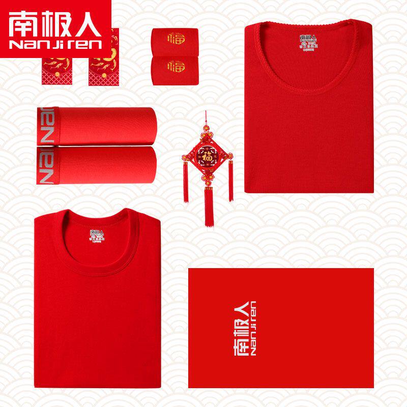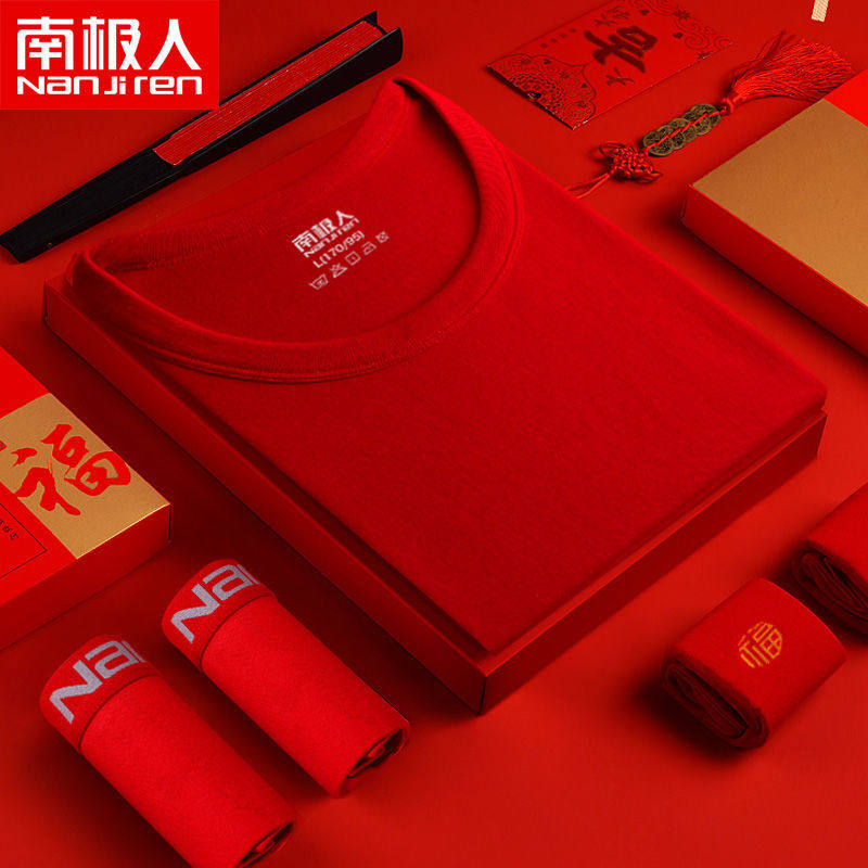 Antarctic people's natal year suit big red men's thermal underwear year of the ox pure cotton autumn clothes sanitary pants female ox gift
