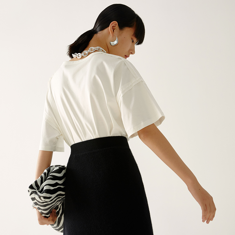 MADEINAM 2021 new versatile front and back stitching design quality mercerized cotton loose silhouette tee