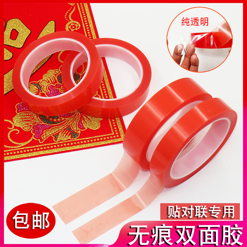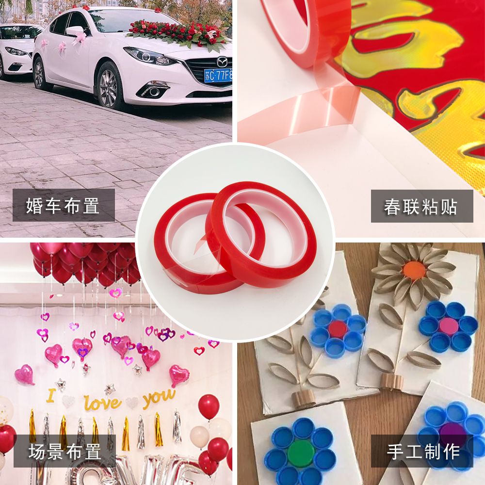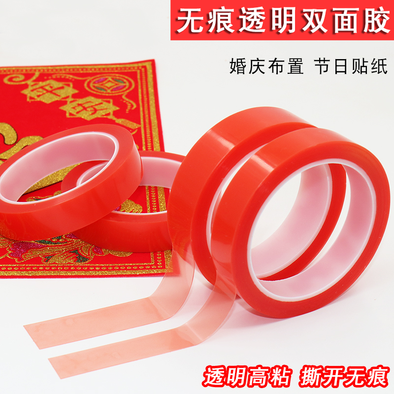Wedding Celebration transparent No-mark double-sided high temperature resistant PET0 2mm thick ultra-thin powerful high viscosity No leaving mark Spring Festival adhesive Special wedding gift cart decorated Spring couplets Double-sided Adhesive with two sides waterproof