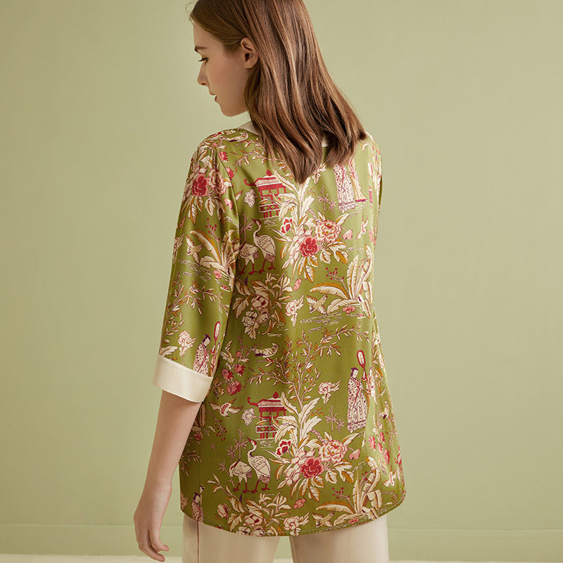 Jinsanta heavy 19 mmi mulberry silk stretch satin Chinese elegant printed nightgown women's mid-sleeve pajamas