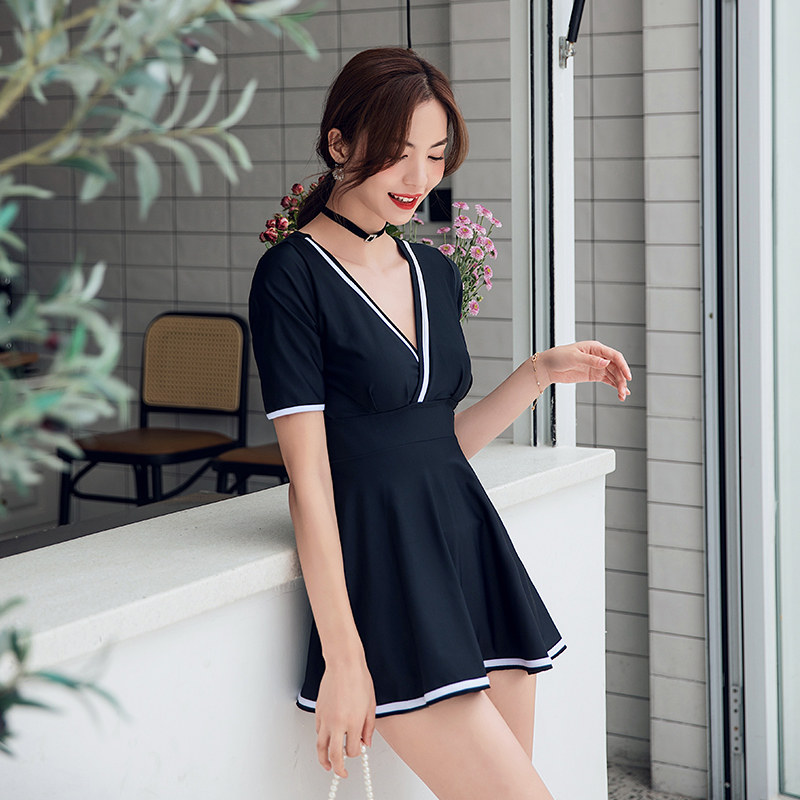 2021 new fairy fan simple sexy slim slim waist cover belly conservative one-piece skirt hot spring swimsuit women