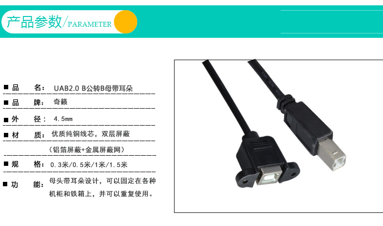 Chic Music USB Square Wire Printing Machine Extension Cord B public to mother high speed switching line with ear pure copper wire rod