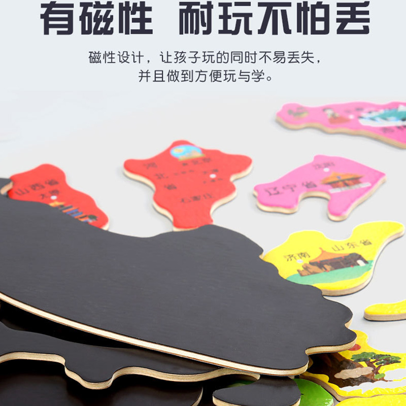 Children's Large Magnetic China Map Puzzle Early Education Puzzle Magnetic World Geography Knowledge Wooden Toy for Boys and Girls