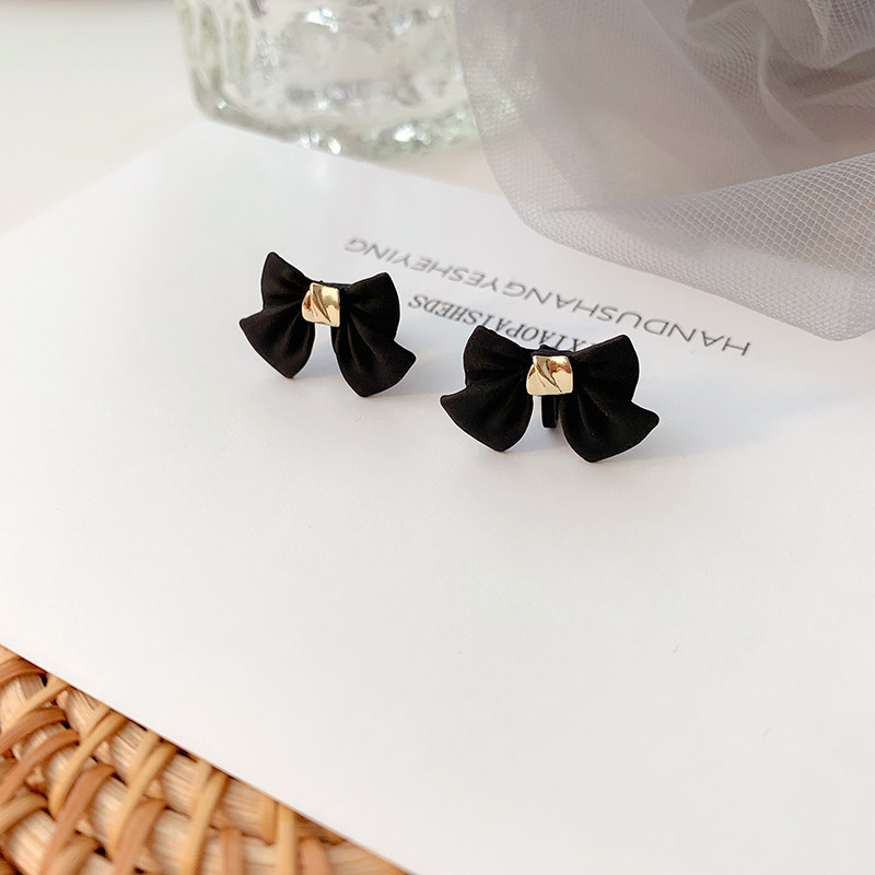 Hepburn style bow earrings temperament Korean high-end earrings 2021 new trendy earrings without pierced ear clips