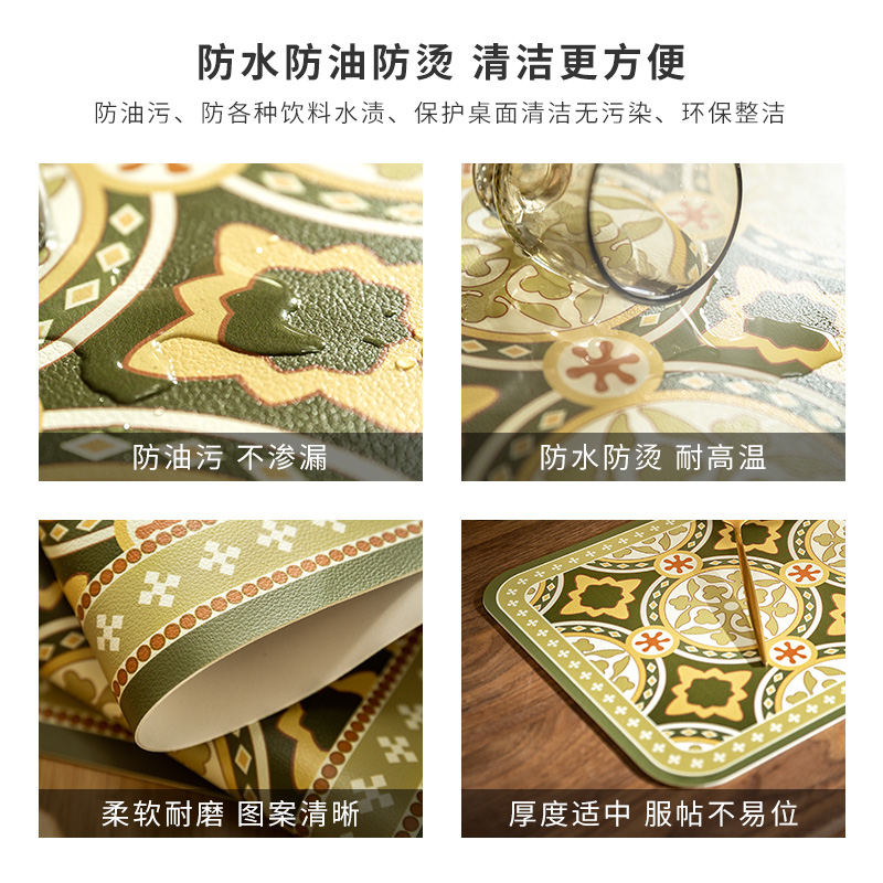 Dream garden American pastoral leather table mat Tablecloth Waterproof, oil-proof and anti-hot table mat Rectangular coffee table mat