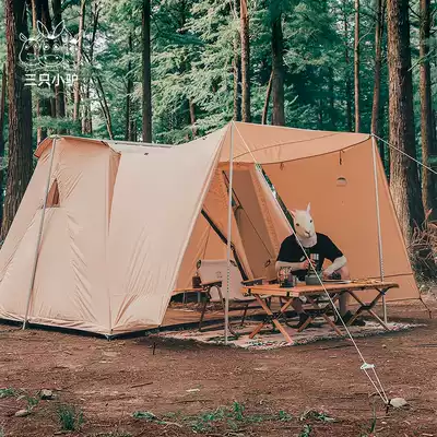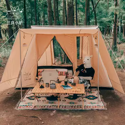 Three little donkeys retro spring tent exposed camp Large thickened rainproof portable cotton spring tent camping tent