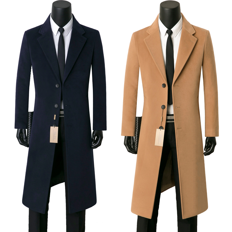 Woolen coat men's long version over the knee handsome trend Korean version of the self-cultivation youth windbreaker mid-length version of the woolen coat England