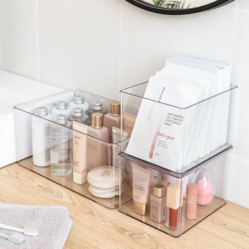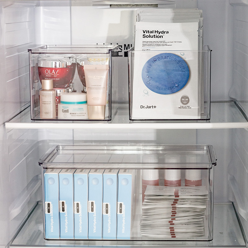 Small number-no cover (vertical placement can be placed about 60 face masks) small number-with a lid (flat placement can place about 35 face masks) large number-no cover (can be placed about 40 face masks and 6 bottles