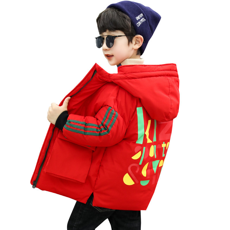 Korean boy's padded jacket, foreign style, warm down cotton padded jacket, short thickened hooded jacket, big boy's jacket, winter red