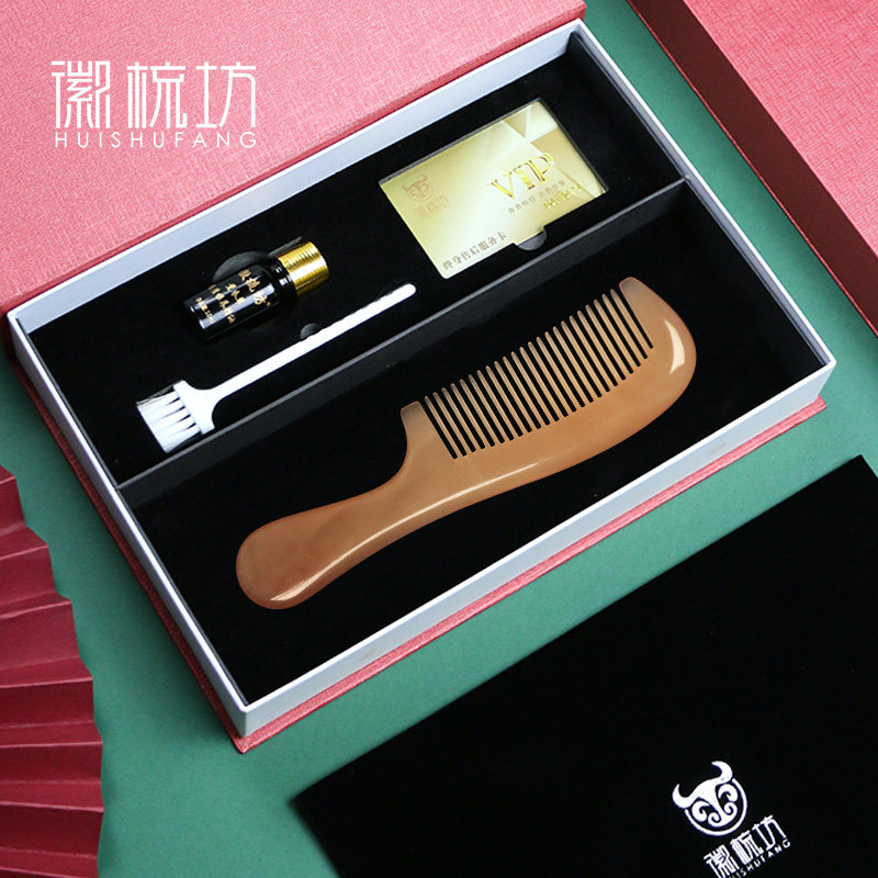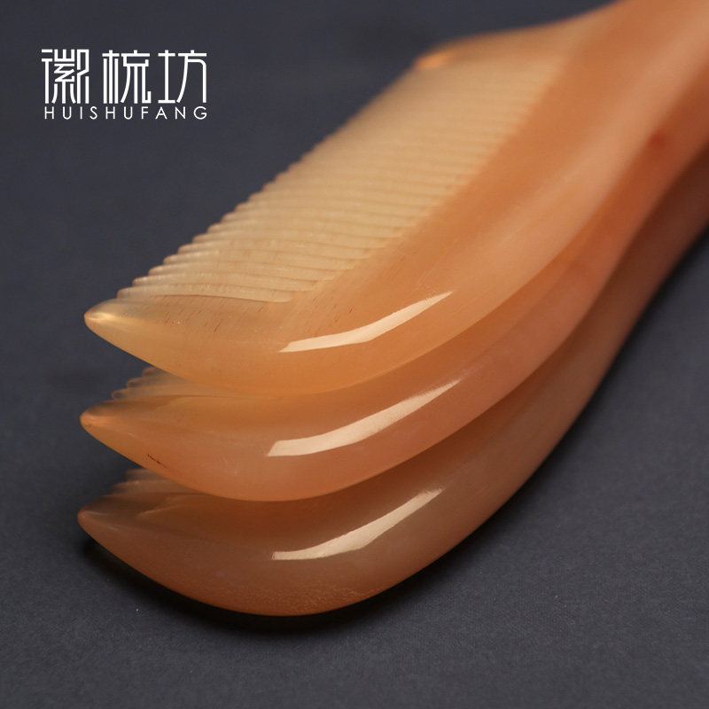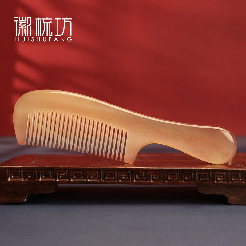 Natural women's home cattle and sheep horn comb head meridian massage white horn comb gift free lettering