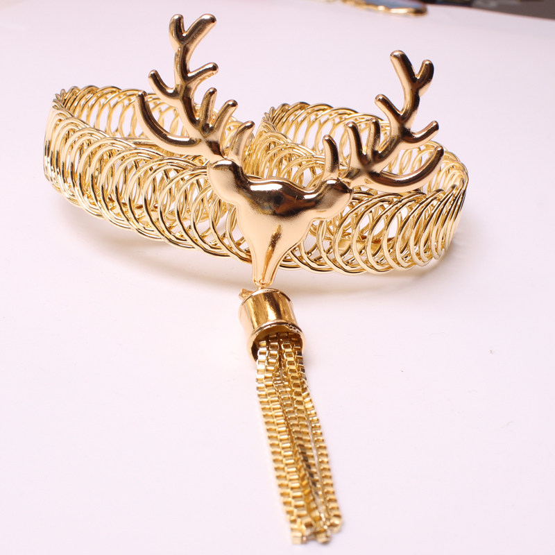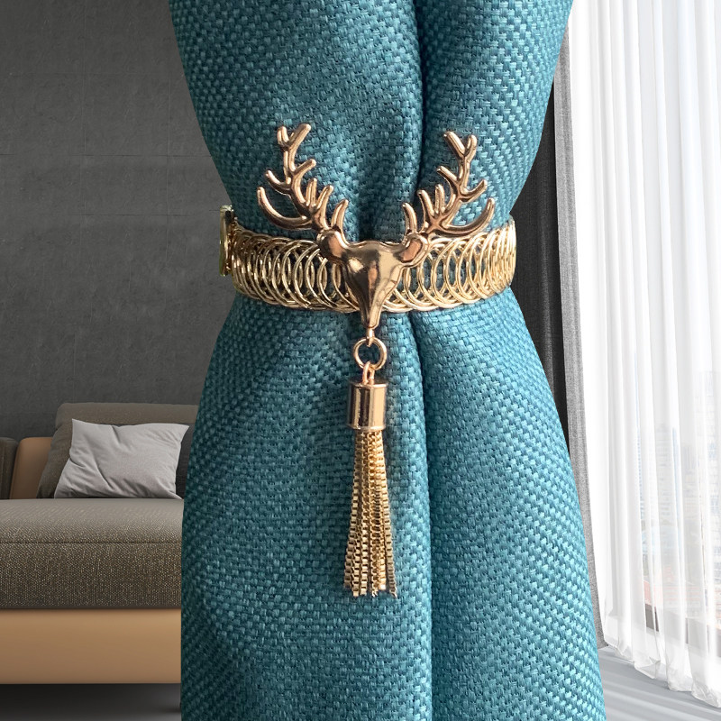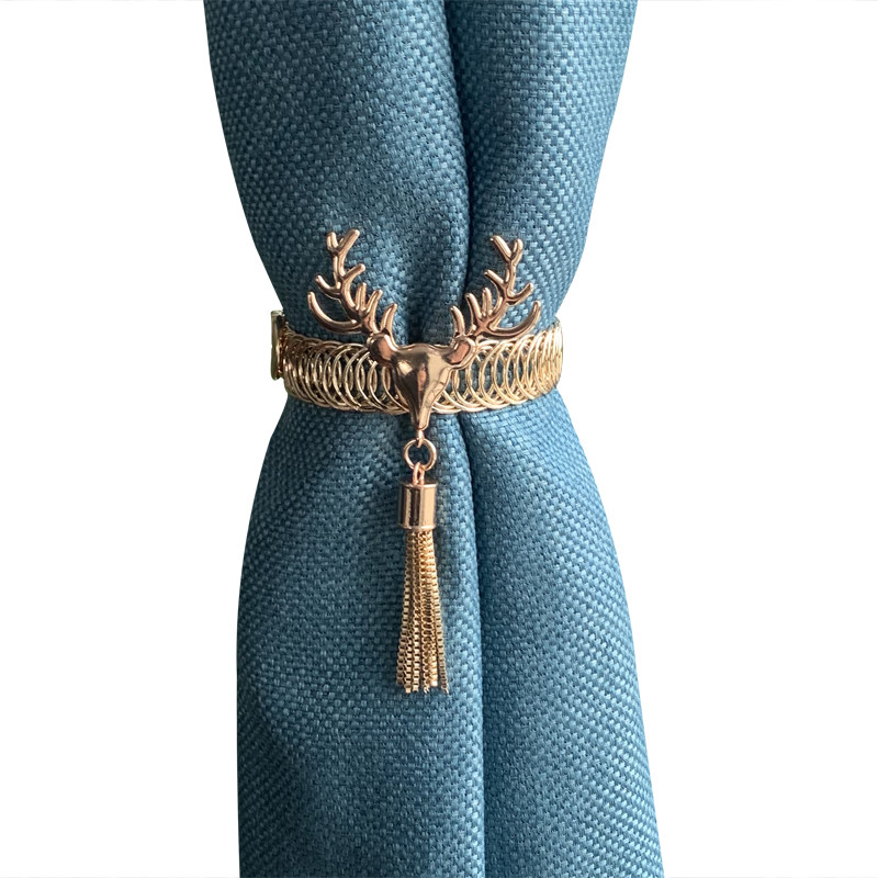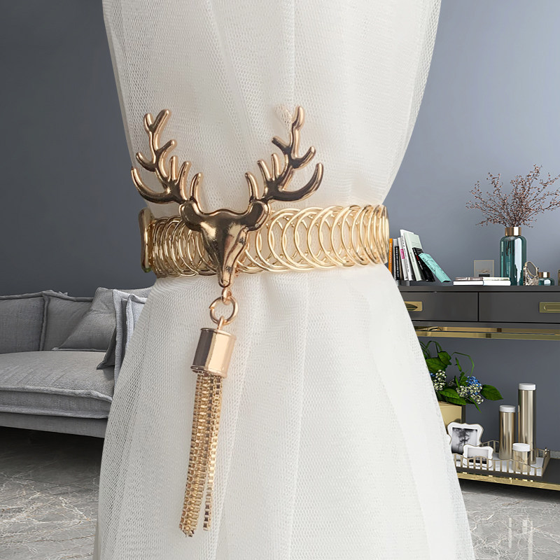 Creative Nordic light luxury style metal deer head hanging tassel curtain buckle curtain strap sample room home soft decoration