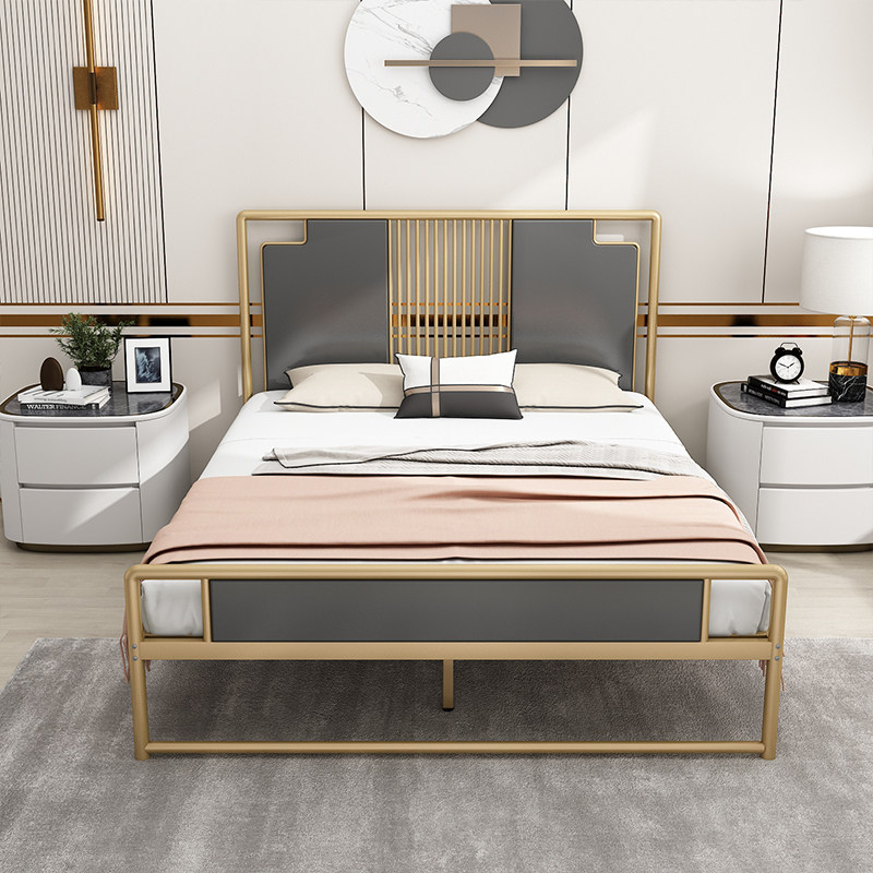 Iron art bed modern minimalist light and luxurious stainless steel 1 5 m double bed plus mattress mesh red master bedroom with single iron frame bed-Taobao