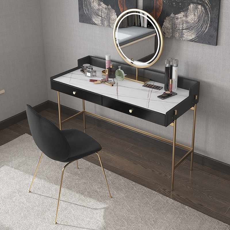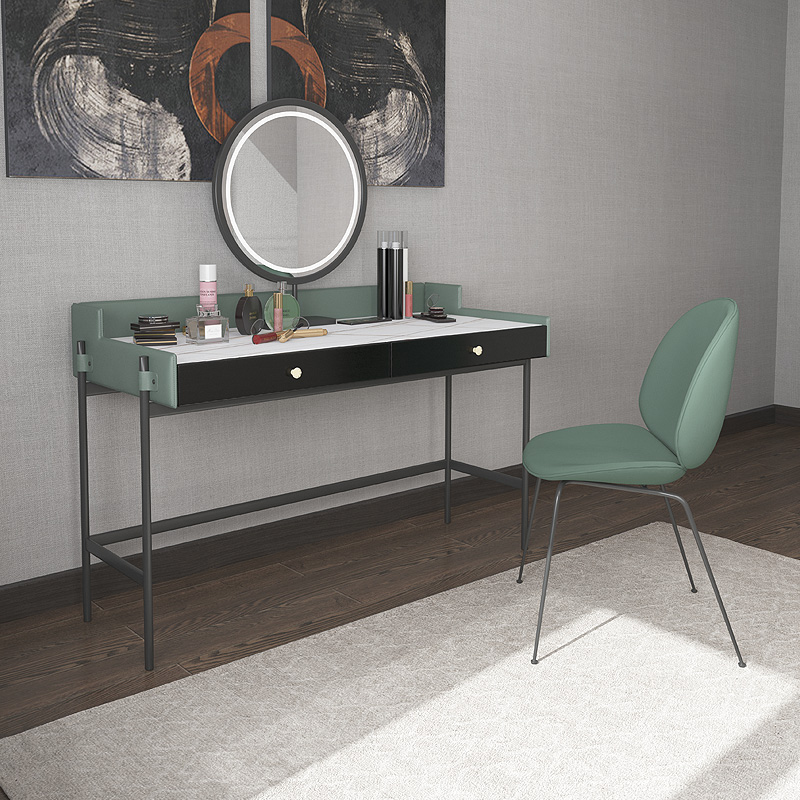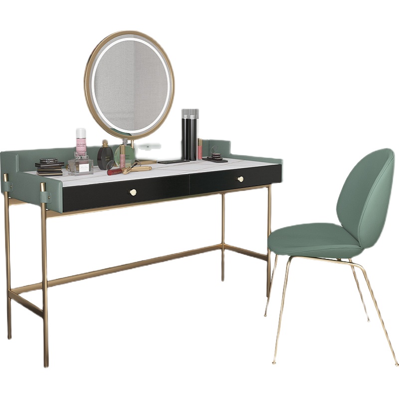 Nordic light luxury Wrought iron makeup table Net Red creative makeup table Three-piece set of simple household rock plate with mirror makeup table