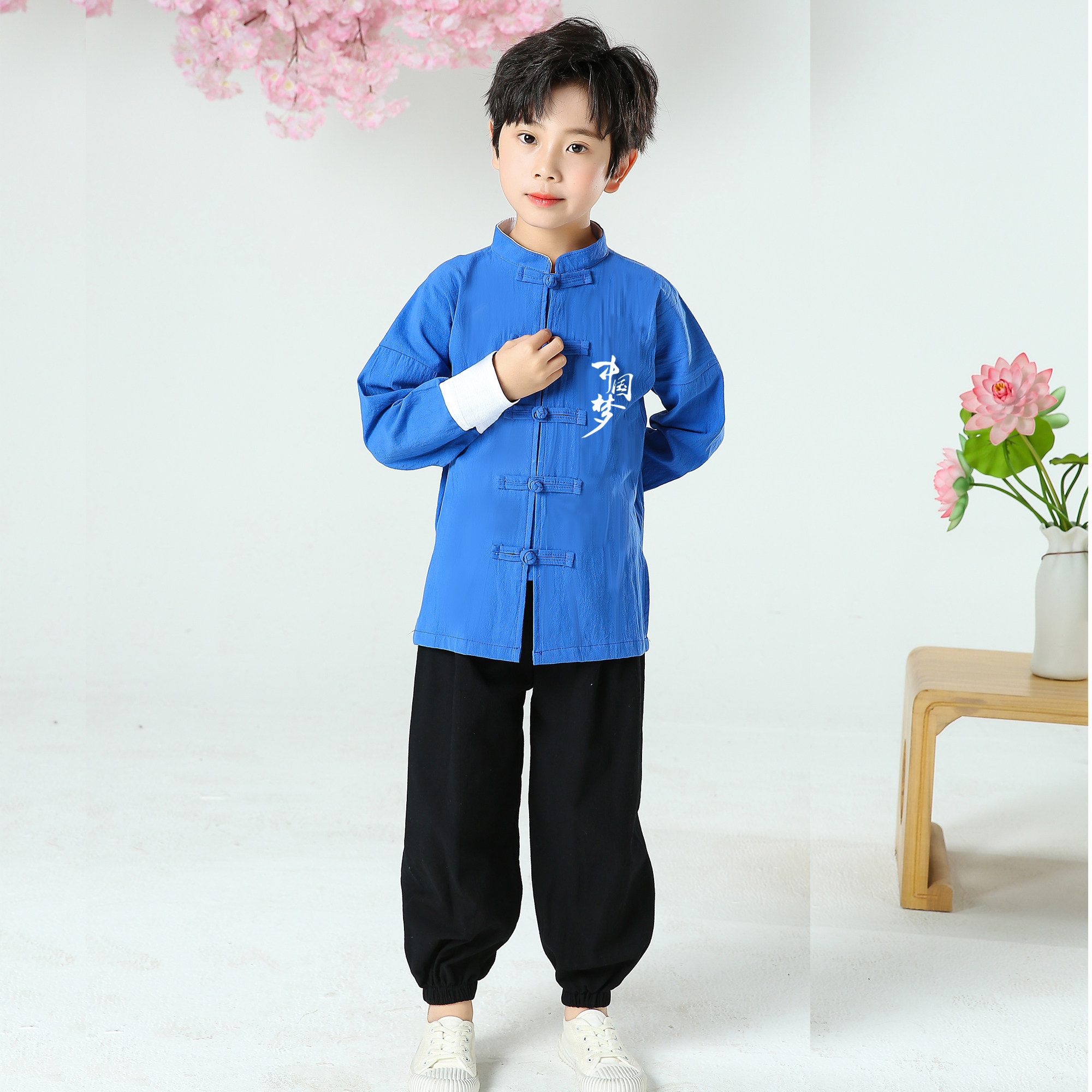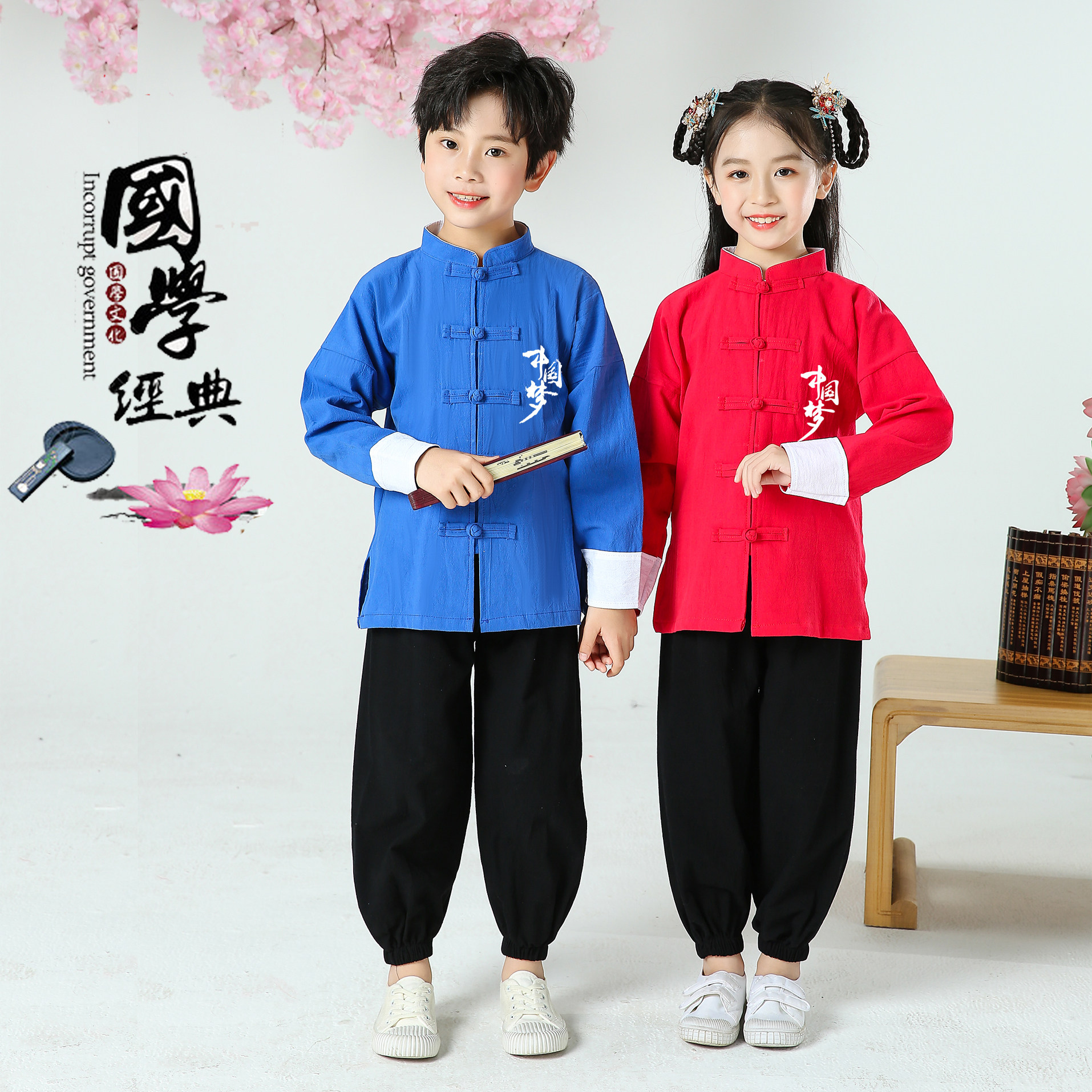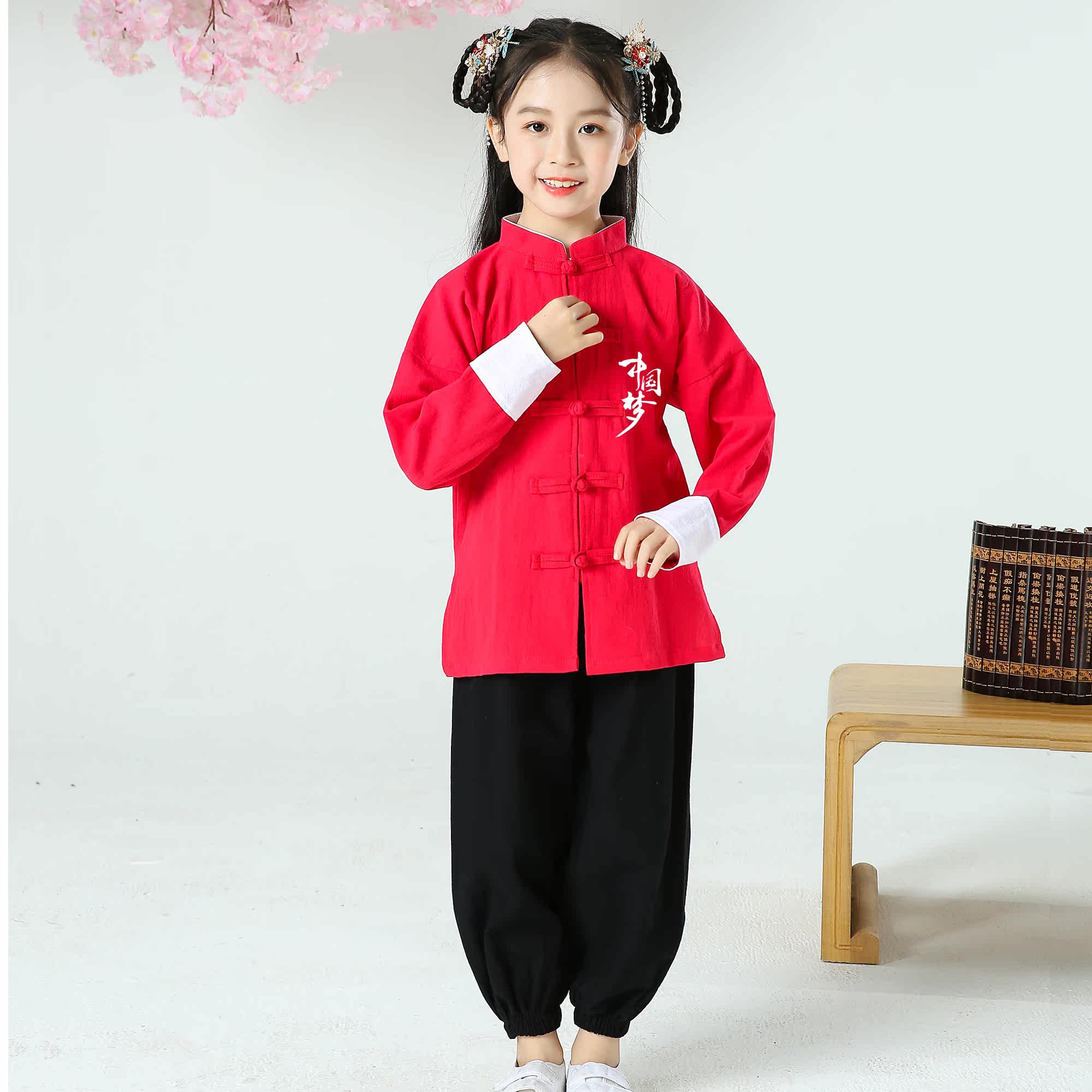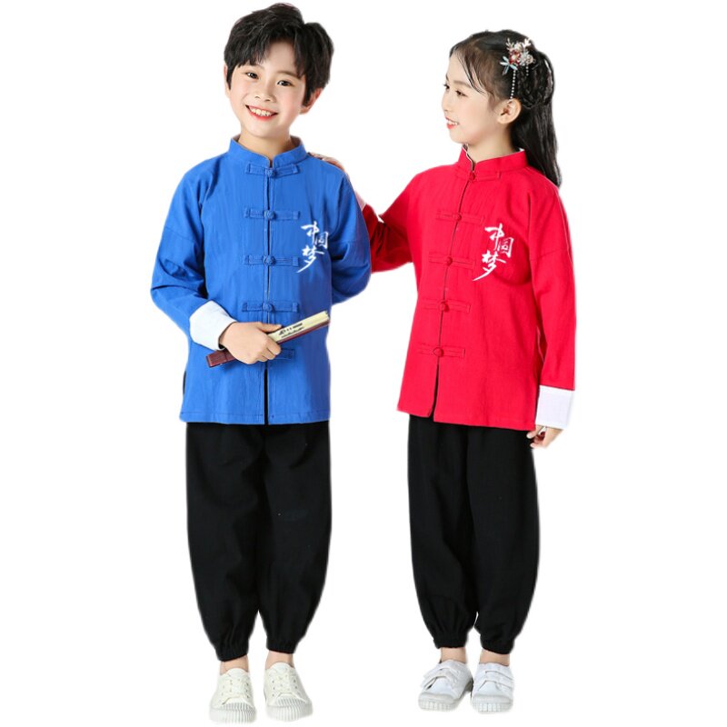 Children's Tang costume ancient costume Hanfu New Year Chinese style men's and women's national school uniform cotton linen Tai Chi clothing children's martial arts performance clothing