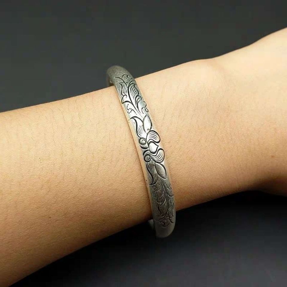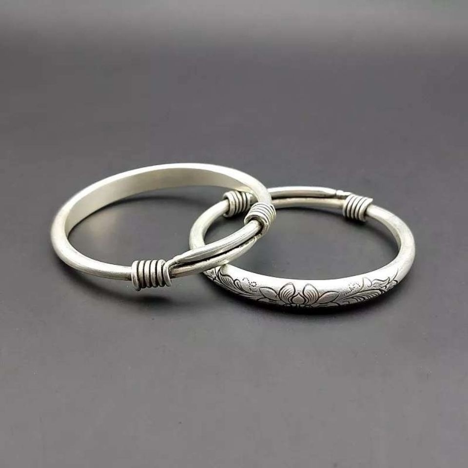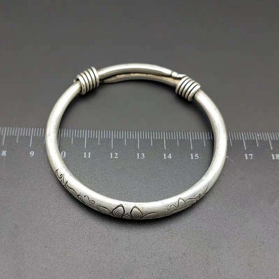 Antiquity Collection of old silver bracelet flowers rich noble nation wind and silver decoration 925 silver old objects push and pull silver bracelet one pair