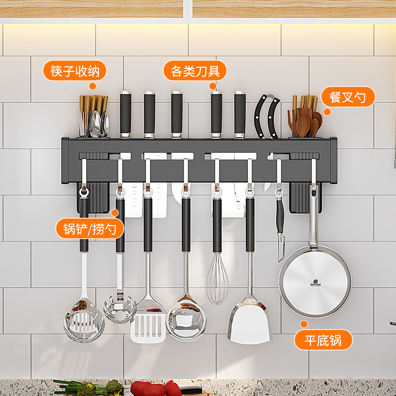 Kitchen stainless steel tool shelf without punching knife chopsticks collection frame one wall-mounted knife