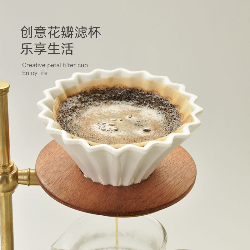 White petal ceramic filter cup delivered conical filter paper Wooden Nursery Blue petal ceramic filter Cup delivered conical filter paper Wood Red Flower Petal Ceramic Filter Cup Send Tapered Filter Paper Wood Trust Black Petal Ceramic Filter Cup Send Tapered Filter Paper