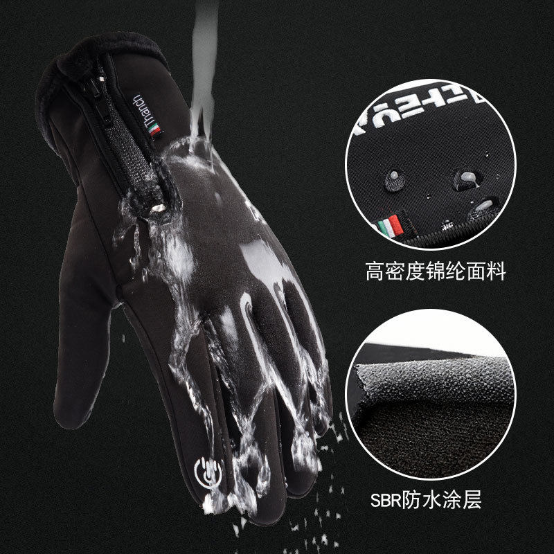Riding gloves men Q903 winter zipper touch screen windproof warm waterproof sports plus velvet mountaineering ski gloves men