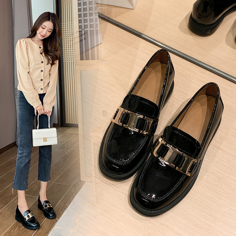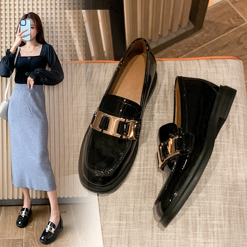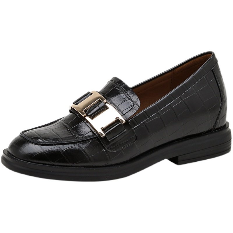 British style black small leather shoes women's soft leather 2022 autumn new metal buckle single shoes leather inner heightened loafers