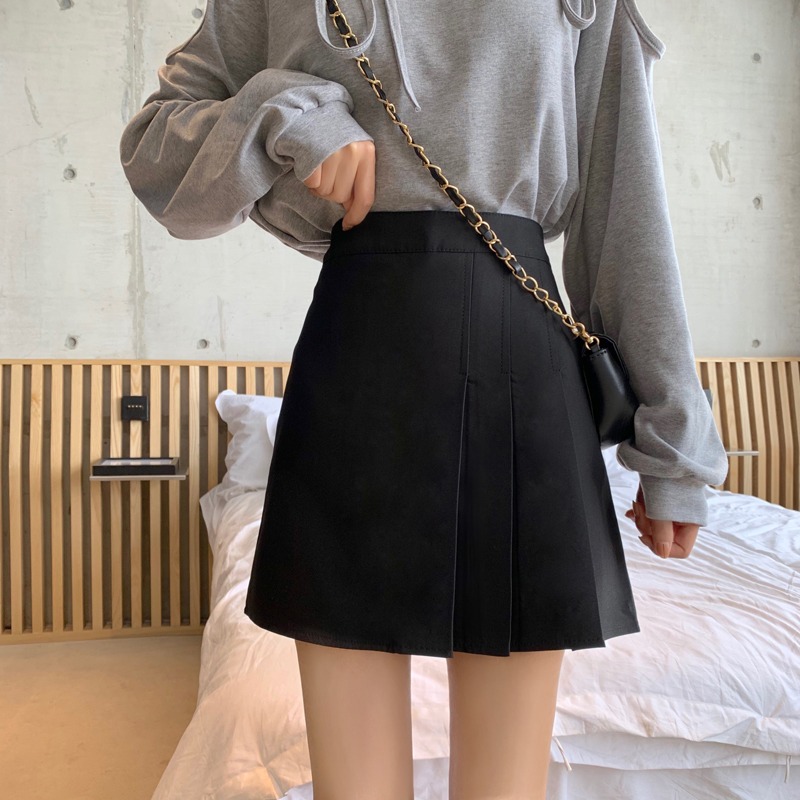 Summer skirt design sensation small crowdwaist display slim A character short skirt small sub black 100 pleats hip half body skirt woman