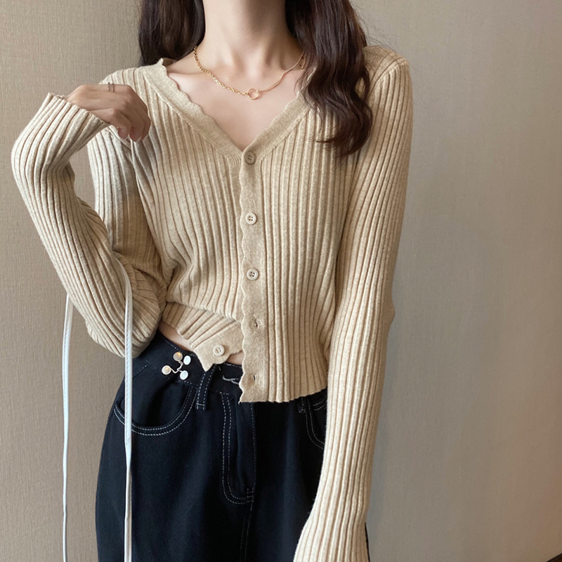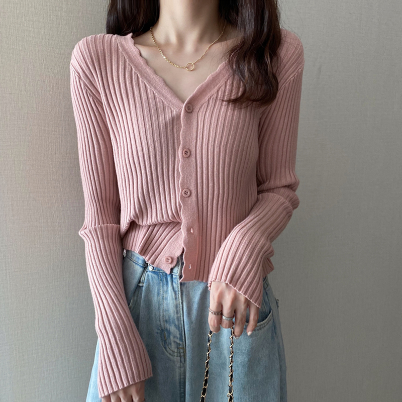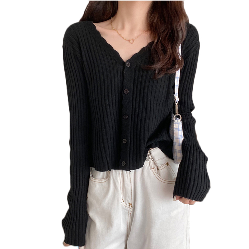 Spring autumn new display slim knit small cardiovert slim in spring season with undershirt shorts V collar black blouses woman