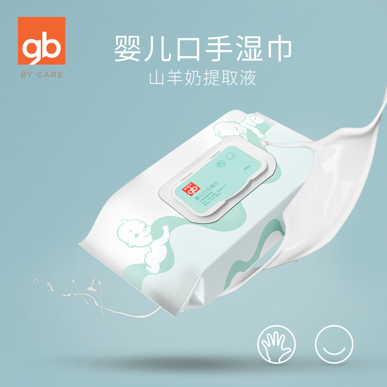 Good baby wet wipes baby hand and mouth special baby wipes goat milk soft wet wipes 80 pumps * 8 packs with cover