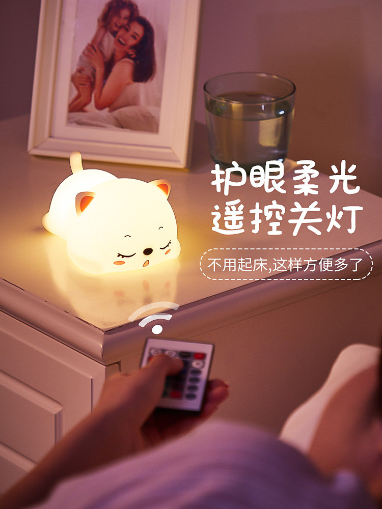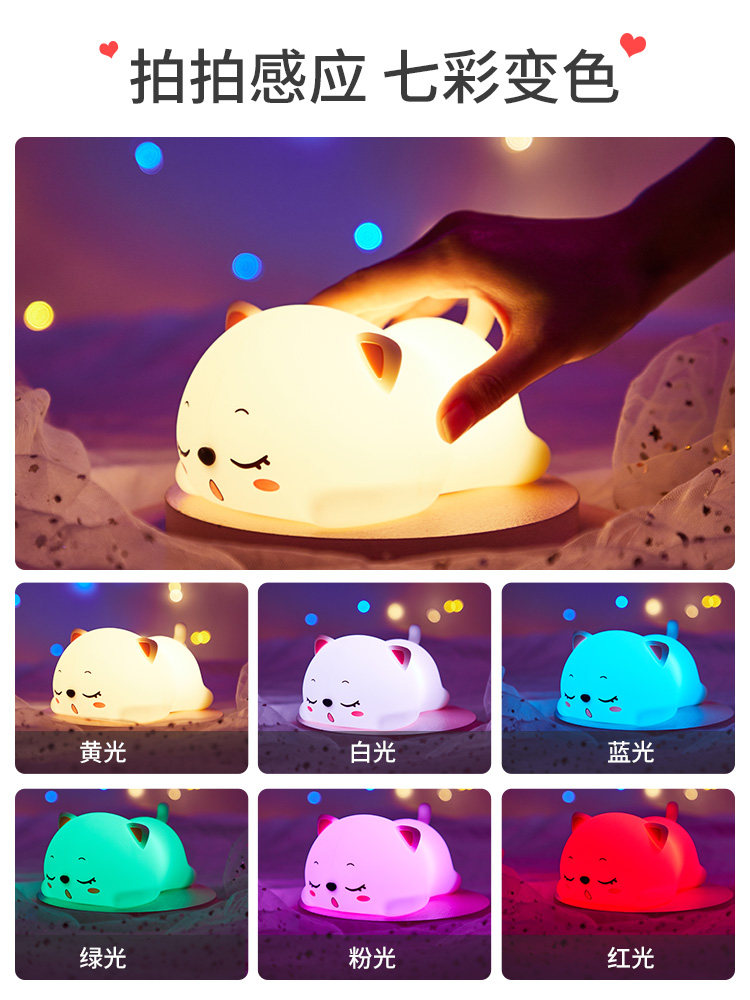 Snoring kitten silicone night light Christmas bedroom bedside sleep sleep girl ins creative pat table lamp