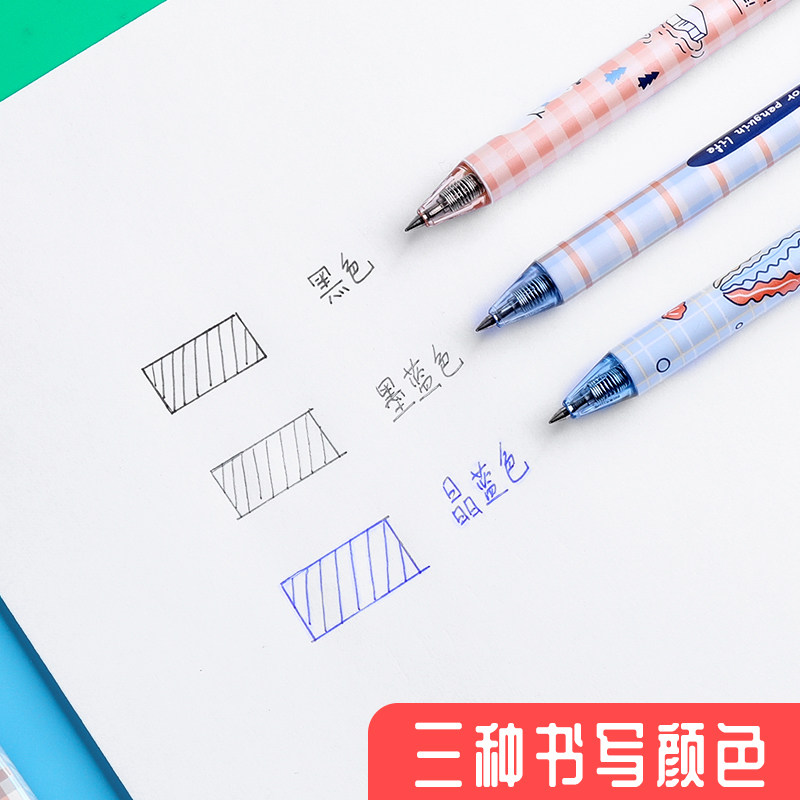 3 black pens, 3 rubber crystal blue pens, 6 rubber black pens, 6 rubber crystal blue pens, 12 rubber black pens, 12 rubber crystal blue pens, 1 rubber black pen, 1 refill