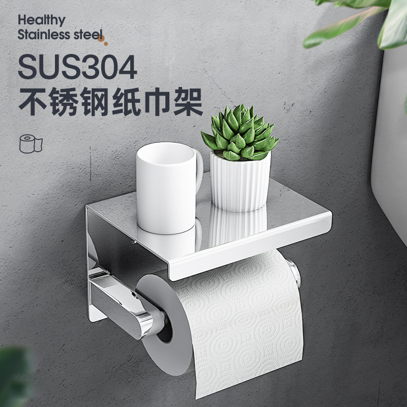 Toilet paper towel rack toilet roll paper cylinder 304 stainless steel toilet bathroom roll paper rack toilet paper box free of punch-Taobao