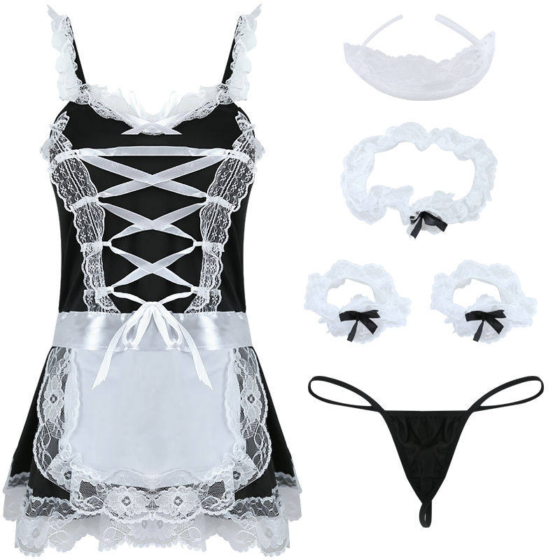 Miss Meow sexy maid temptation pajamas sweetheart nanny lace apron uniform private room flirting suit