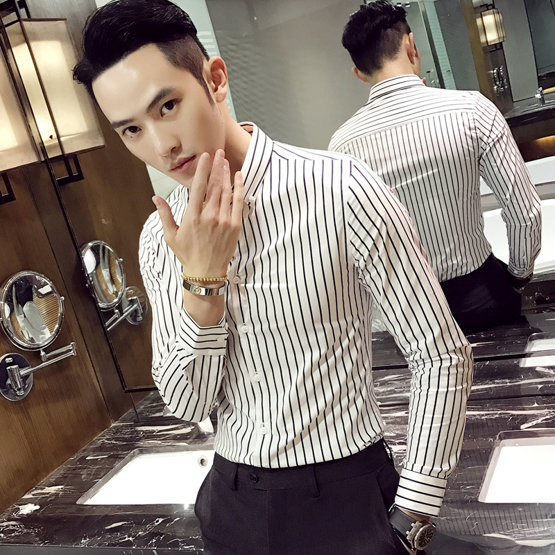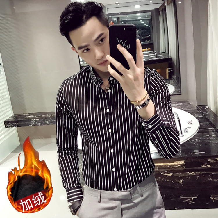 Fugui bird men's striped long sleeve shirt Korean version trend to fix the bottom thickened suede shirt 2021 spring new