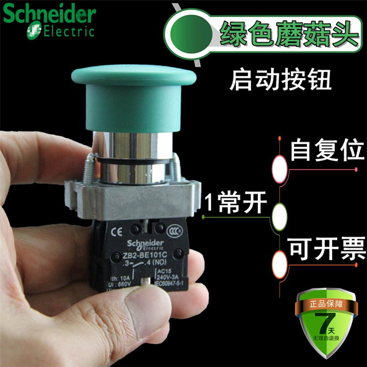 Schneider green mushroom head push button switch XB2BC31C self-reset start button XB2BC42C Stop