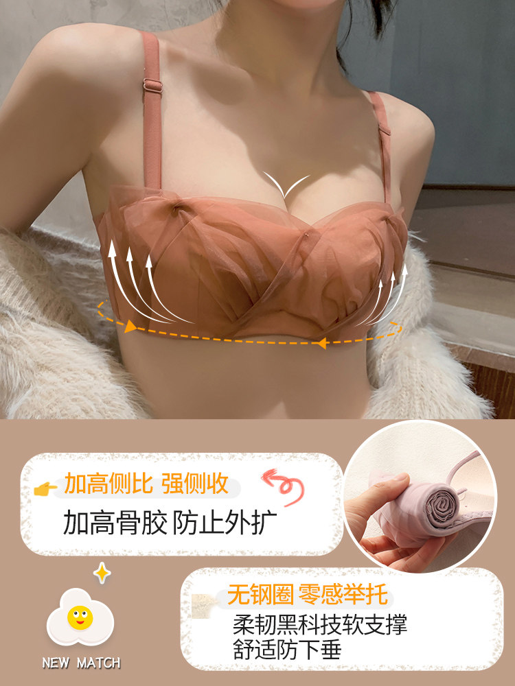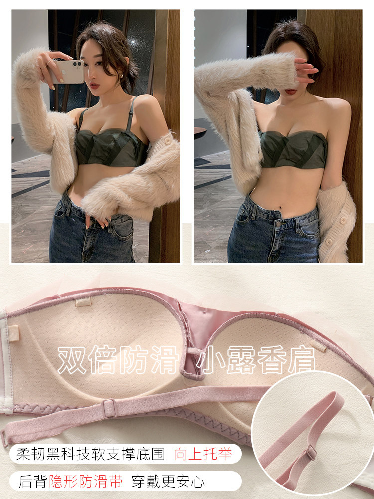 Small-breasted lingerie women's gather flat chest special bra adjustment type no underwire bra strapless strapless non-slip panty set