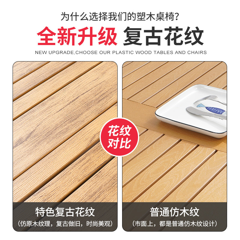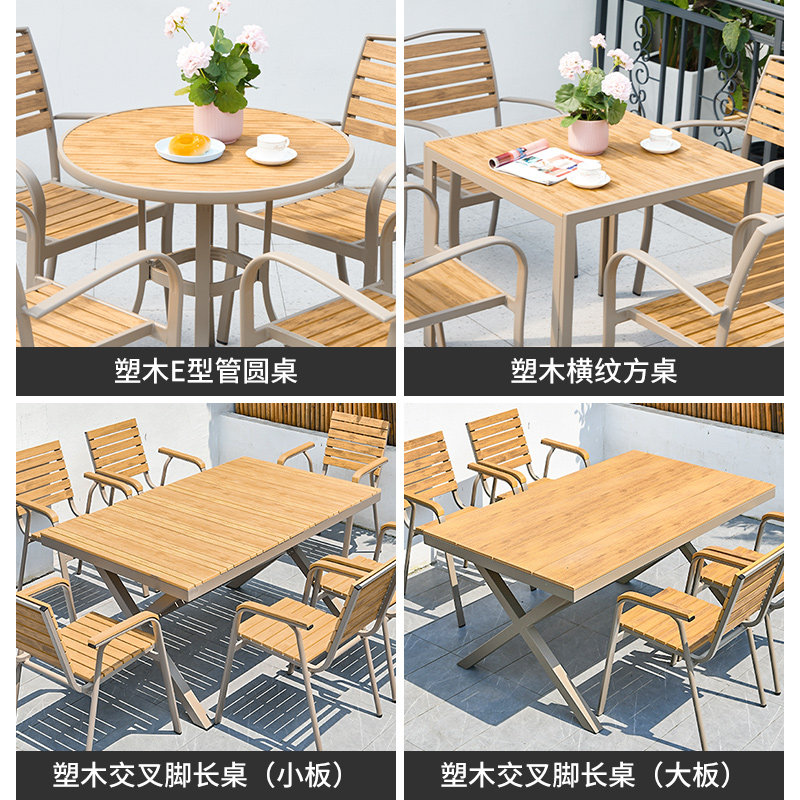 Outdoor plastic-wood tables and chairs garden leisure outdoor anti-corrosion wood open-air waterproof sunscreen balcony villa garden tables and chairs