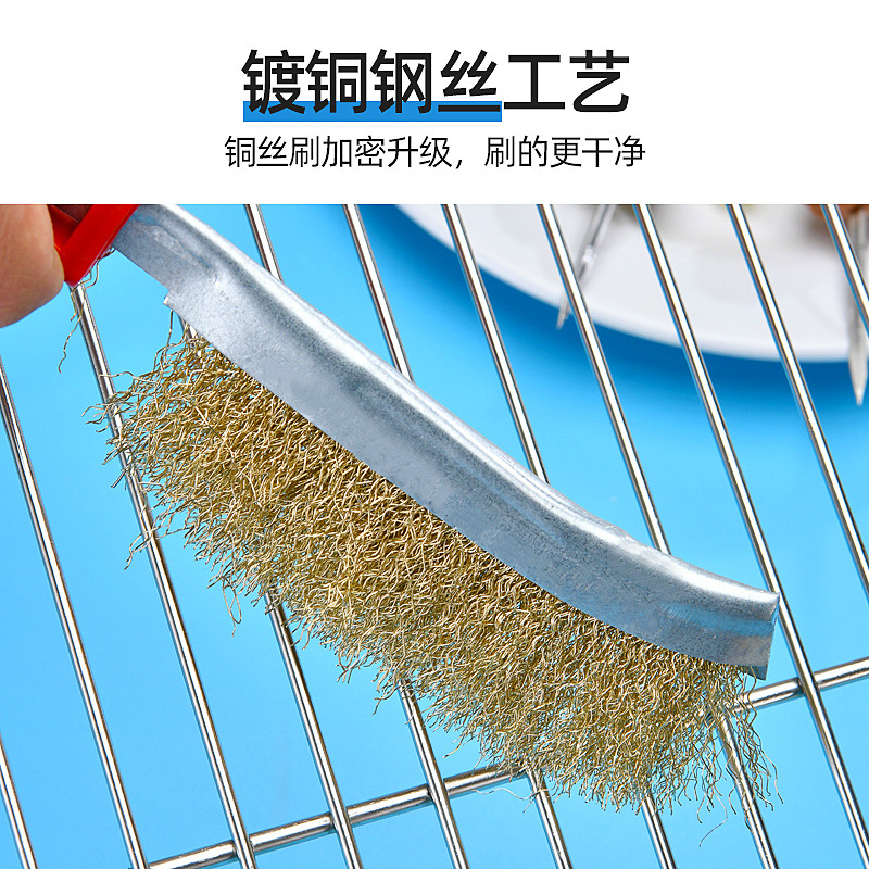 Steel Wire Knife Brushed Copper Plated Rust Brush Wire Brush Knife Shaped Clear Slit Brush Plastic Handle Iron Brush