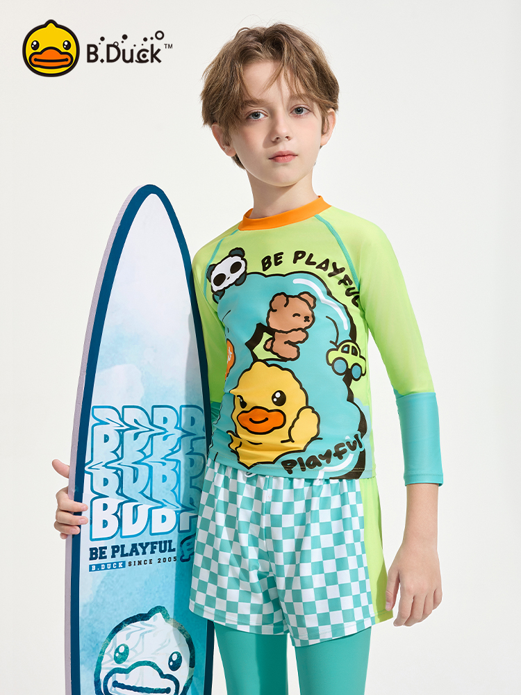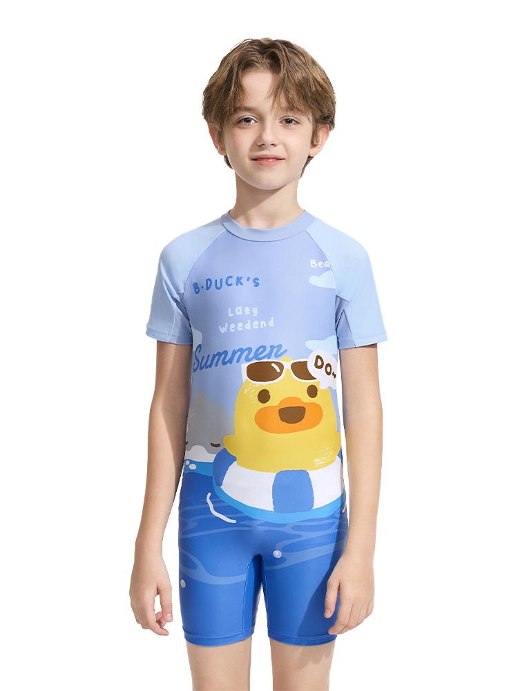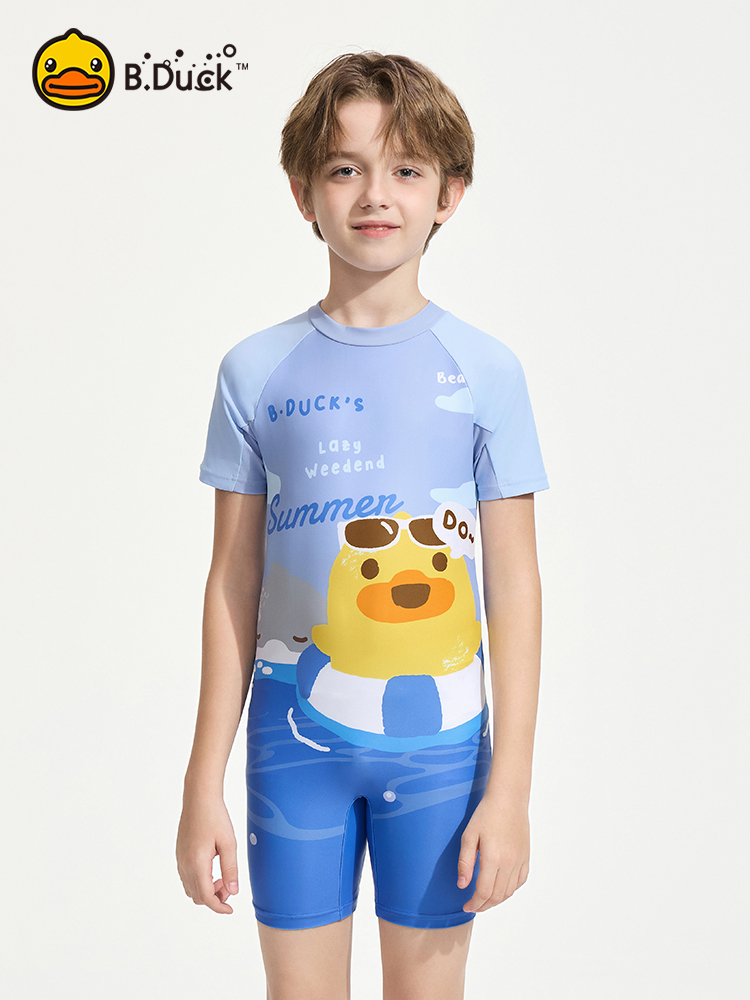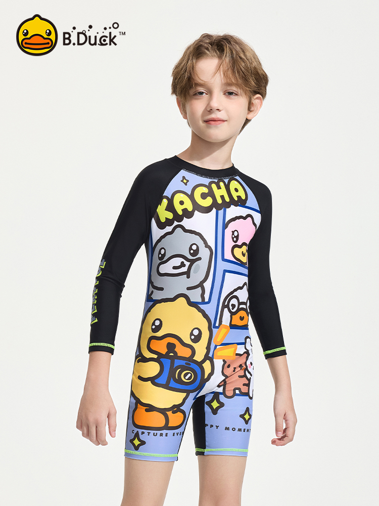 B Duck children's swimsuit boys one-piece 2024 new sun protection hot spring warm medium and large children professional training equipment