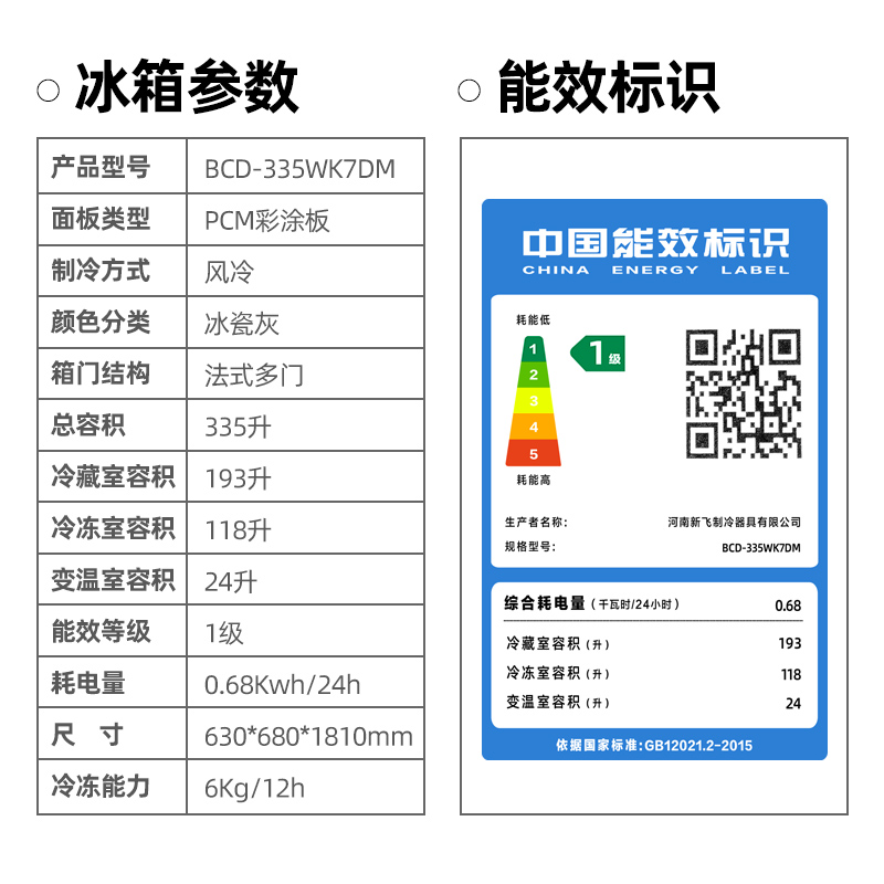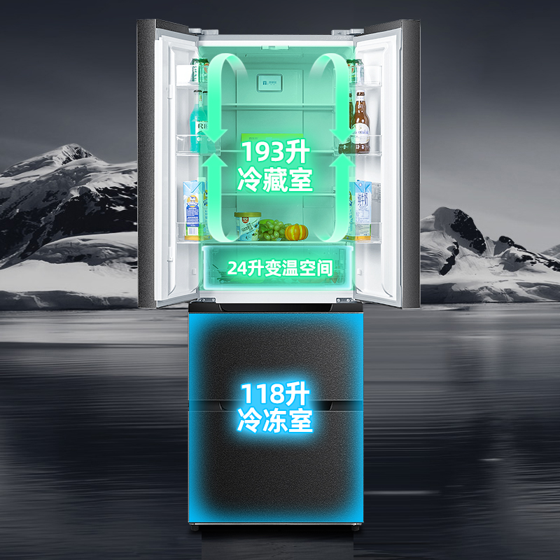Xinfei 335-liter frequency conversion air-cooled frost-free class household energy-saving French multi-door Double Door 4 four-door refrigerator
