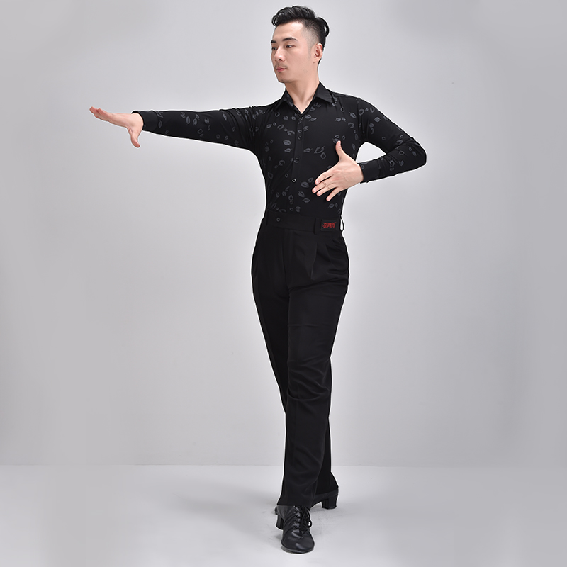 Dancing Pavilion Black Latin Dance Costume Men's Adult Top Long Sleeve Costume Rumba Just Practice Dress National Standard Dance Dress