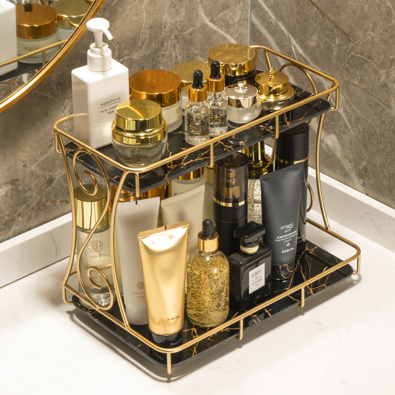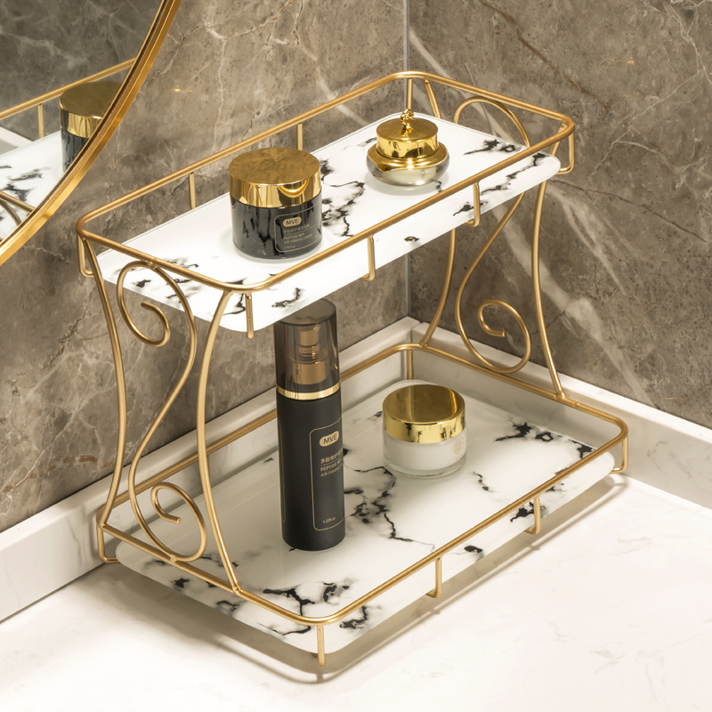 Bathroom cosmetics Washing countertop storage shelf Powder room toilet hand washing face Light luxury double storage box artifact