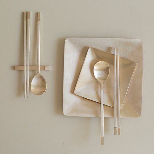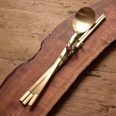 South Korea's mouth to eat and broadcast the same cuisine, high-end golden bronze, rice spoon, ramen chopsticks, luxury couple tableware