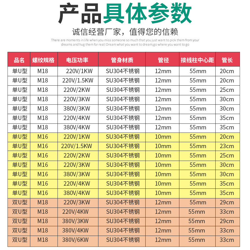 Single U Type M18 304 Steel 220V 1KW Single U Type M18 304 Steel 220V 1 5KW Single U Type M18 304 Steel 220V 2KW Single