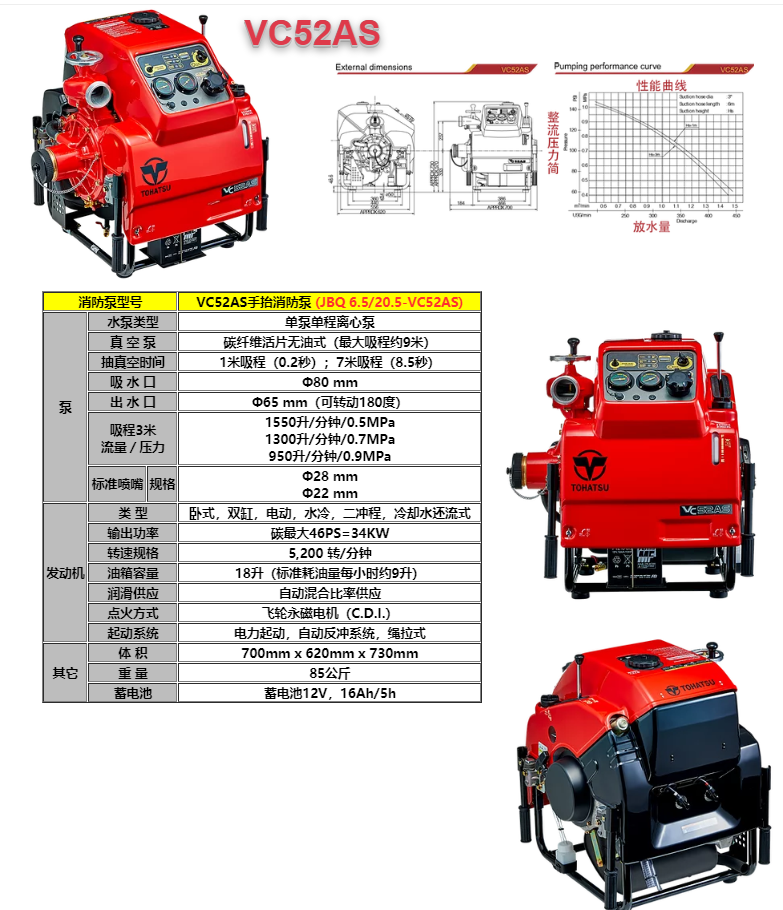 VC52AS hand lift motorized fire pump Dongfa fire pump TOHATSU Dongfa fire pump imported fire pump